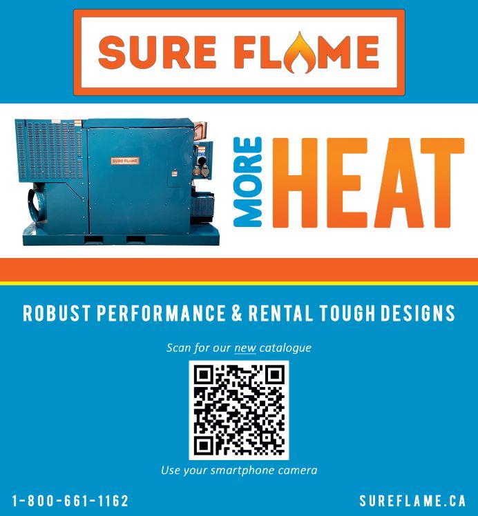 time diagnostic tools are available and easily accessed through the on-board LCD screen, which is certified for extreme cold weather operation. Tailor-made for the rugged demands of the rental industry, the SE410 is easy to move, stackable and extremely serviceable. Sure Flame also offers its three-year warranty on the product.