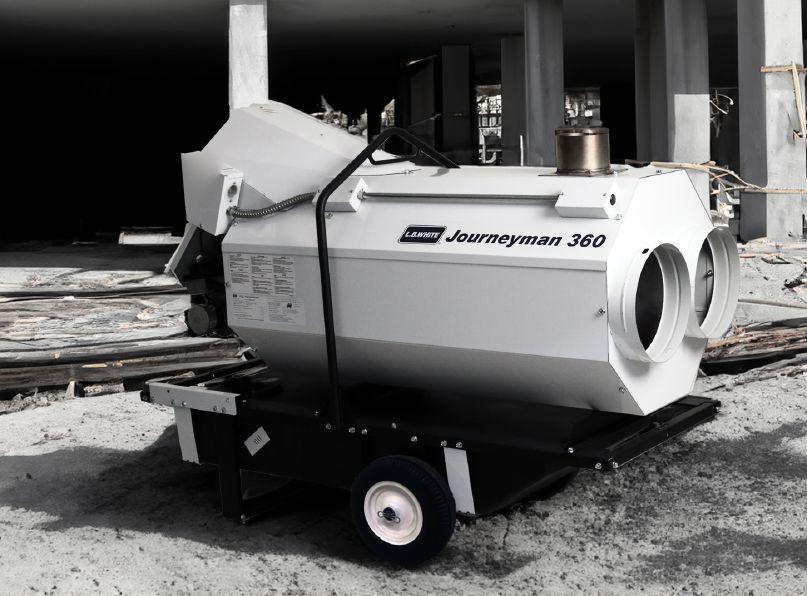 option with an on-board 40-gallon tank. Keeping the electrical requirements simple allows for a 120V power requirement. While the product can function in manual mode, there is a thermostat option offered as an accessory to provide flexibility to tether the thermostat closer to a work area. When looking for big heat and simplification the Journeyman 360 is ideal.