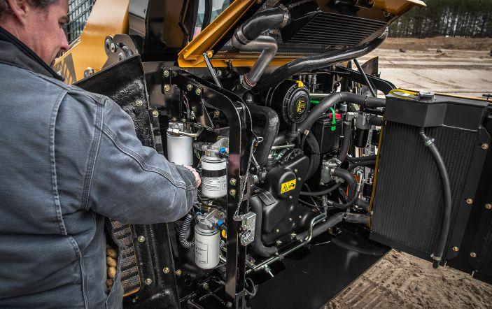 Fuel and hydraulic filter mounting and access can also make a huge difference in the amount of time a compact track loader is down for regular maintenance. Machines designed for simple maintenance will have rigid-mounted, spin-on fuel filters for easy access and faster changes. Some manufacturers use insert filters that are often hidden deep in the engine bay. While this can save them headaches on the engineering side, it costs the end user time and money. A compact track loader that features hydraulic filters in easy-to-access places can save your staff precious minutes on every filter change and allow them to get the machine back on rent faster.