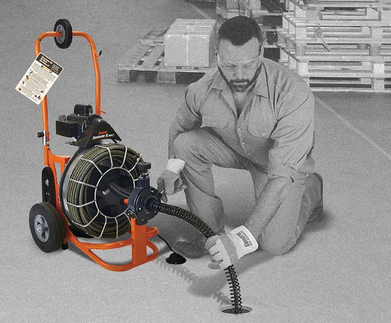 Make drain cleaning easier with General’s Speedrooter 92R with automatic feed. Instead of wrestling a snake in and out of the drain, the automatic feed drives the cable into the line at up to 20 feet per minute, saving customers both time and labor. The automatic feed features a guide tube that keeps your customers’ hands clean and away from the spinning cable. The Speedrooter 92R keeps customers happier and coming back for more. Call the Drain Brains® at 800-245-6200, or visit www.drainbrain.com/rental.