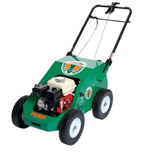 seed gate is also adjustable to accommodate a broad range of grass seed. The 12-gauge tempered steel delta blades have a unique angled position and beveled cutting edges that cut slits in the ground for dethatching, overseeding or aerating slopes and terraces. Ideal for thinning running-stem grasses like Bermuda and St. Augustine. Every Bluebird power rake and seeder has an adjustable handle allowing for three different operator heights as well as folding for easy transportation and storage.
