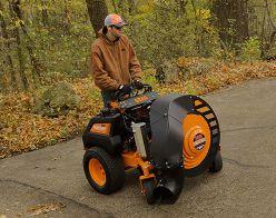 The Scag Windstorm stand-on blower is ultra compact, agile and ergonomically designed with surefooted traction and smooth clutch engagement. Powered by a 37-horsepower Briggs Vanguard Big Block EFI engine, it produces up to 7,500 cubic feet per minute – ideal for leaf/debris or road construction cleanup. With 18 degrees of vertical tilt, the fin-