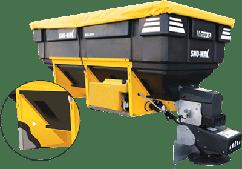Poly dual-electric RVB spreaders from SnoWay are built with the professional contractor in mind. They are available in a variety of sizes from 10-cubic foot UTV-mount designs to large 2 1/2-yard truck-mount applications. Equipped with easy on/ off rear spinners, tarps and tie down straps, they feature a computerized controller in conjunction with the two strategically located vibrators to allow spreading of numerous wet or hard-to-spread de-icing products.