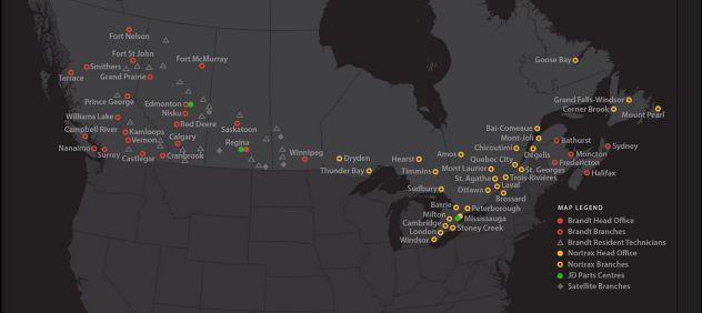 “The addition of Nortrax’s impressive branch and distribution network gives us an unprecedented opportunity to offer customers anywhere in Canada a consistent customer support experience, no matter where their projects take them.” said Brandt president and CEO, Shaun Semple. “We are very proud to deliver the quality products and support services that Canadian customers rely on for their success, every single day.”