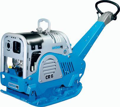 force of 12,364 pounds. and weighing only 794 pounds, this 24-inch-wide Hondadriven compactor will exceed expectations, whether needed for classic applications in road building and civil engineering or for embedding paving stones. Its balanced operating characteristics and exceptionally smooth operation with low hand-arm vibration (under 2.5 meters per second squared) provide for extreme ease of use. This high level of comfort is also guaranteed by the guide bar which can be folded up and locked as well as adjusted to the operator‘s body height. An all-around enclosure and the sturdy frame provides full protection for the engine, thereby increasing operational reliability. The throttle cable and hydraulic hose are also protected in the guide bar to avoid any damage. The exhaust pipe is in the front of the machine to avoid the operator being exposed to unnecessary fumes. Meanwhile, the maintenance door in the front of the machine provides easy access to all essential maintenance points and with easy belt access and a self-adjusting clutch, this machine will save both time and money. The CR 6 with a GX 390 Honda engine is available with both pull and electric start. Optional accessories include a polyurethane pad for pavers and extension plates extending to 29 inches (or take standard extensions off for a narrower width of 18 inches).