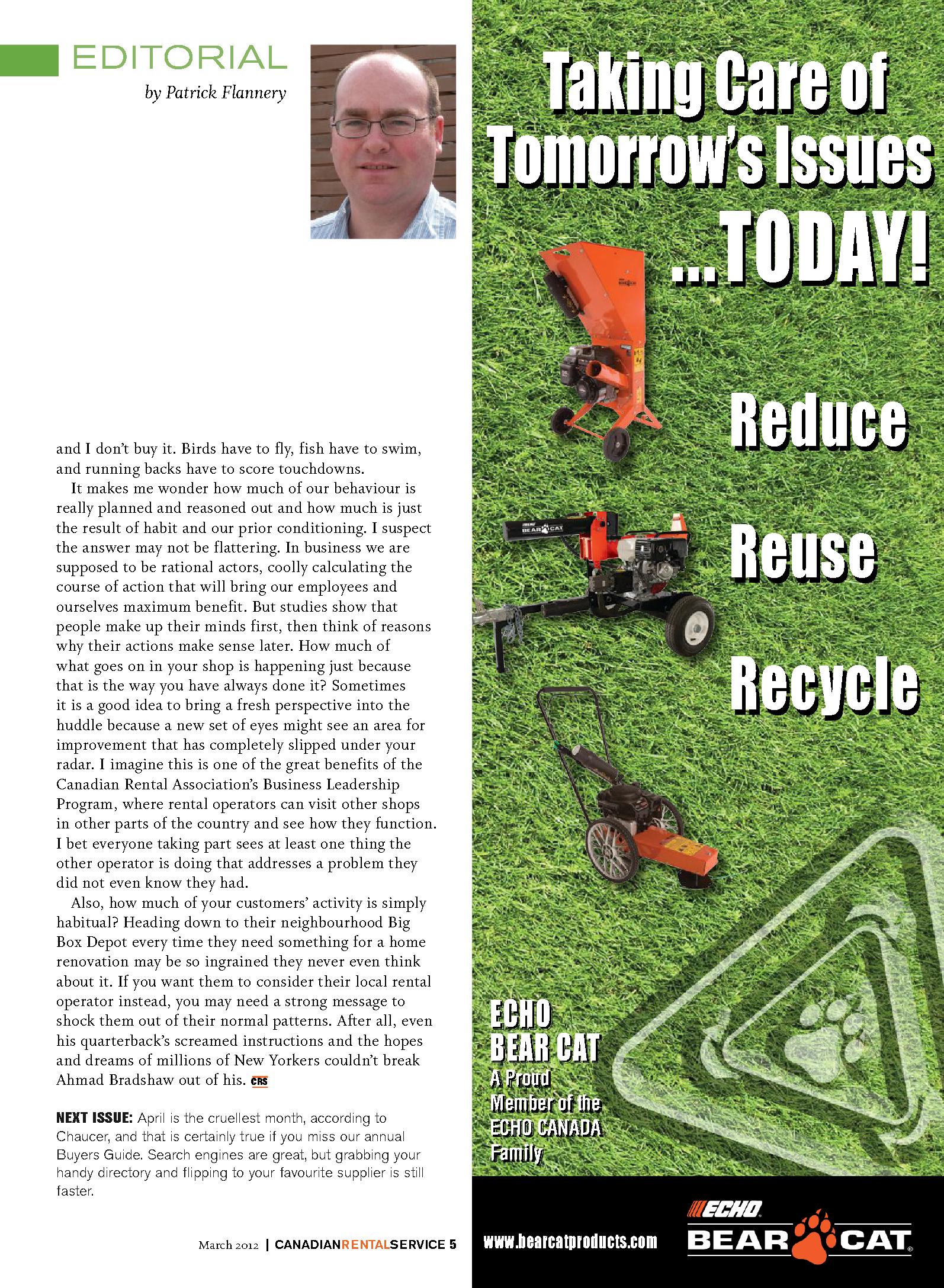 Occasionally, Canadian Rental Service will mail information on behalf of industryrelated groups whose products and services we believe may be of interest to you. If you prefer not to receive this information, please contact our circulation department in any of the four ways listed above.