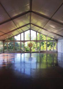 kedered roofs and walls, curved beam arches and a rigid assembly without any nuts or bolts. With its curved lines creating an elegant and modern look, the Legacy is sure to draw the anyone’s eye. The Legacy line showcases improved features that dramatically reduce installation time and costs. These features include fewer, compatible parts and a lightweight anodized aluminum frame assembly with no nuts or bolts required The Legacy can be installed with a four-person crew without any machinery. It features the capability of expanding in width just by swapping out a few rafter pieces. One of the most important features is the universal cotter pin that is used to assemble practically the entire structure. This allows for easier and faster install time. With guy outs or side/roof steel roof bracing, and rigid connectors, this tent offers easy of installation and enhanced versatility. It’s easy to put together. Its smaller profile and lighter frame add flexibility when installing and also provides versatility in location options. Its high peak makes it a must-have for wedding ceremonies, providing opportunity for elaborate ceiling decor. The walls are secured on all sides and easy to slide open when desired.