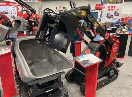 Barreto’s 23CD concrete dumper has a 2,200-pound payload capacity and a stand-on platform. It has a 180-degree pivot angle and a 90-degree dump angle. The tracked unit is 35 inches wide and is powered by a 23-horsepower engine.