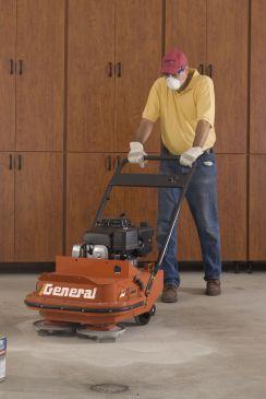 by contractors and homeowners alike and features various grinding systems for breaking up deposits, cleaning/ polishing concrete and tile, producing exposed aggregate slabs and other general concrete grinding applications. Powered by an industrial quality Honda 11-horsepower engine, the SG24/GH includes dual counter-rotating multi-accessory discs that rotate at 250 RPM and offer a maximum grinding width of 24 inches. The unique design balances forces to help reduce operator fatigue while enhancing machine control. Furthermore, an adjustable operator handle accommodates different user heights and preferences. A wide range of industry-standard interchangeable attachments are available, including grinding stones, scarifiers, wire brushes, the Scrape-R-Tach