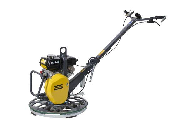 Atlas Copco’s new family of BG walk-behind power trowels includes three main models: an edger, a standard robust workhorse and a high-capacity model for fast results on large areas. Blade diameters are 24, 37, and 47 inches, respectively. Compared to the previous range, the new models have some important differences. There are two options for pitch adjustment and all versions feature QuickStop for maximum operator safety, foldable de-vibrated handles and a maintenance stand. With QuickStop, blade rotation stops immediately. Walk-behind power trowels are often equipped with a centrifugal clutch that unfortunately allows handle spin of up to 540 degrees from the moment the handle is released until the rotation is completely