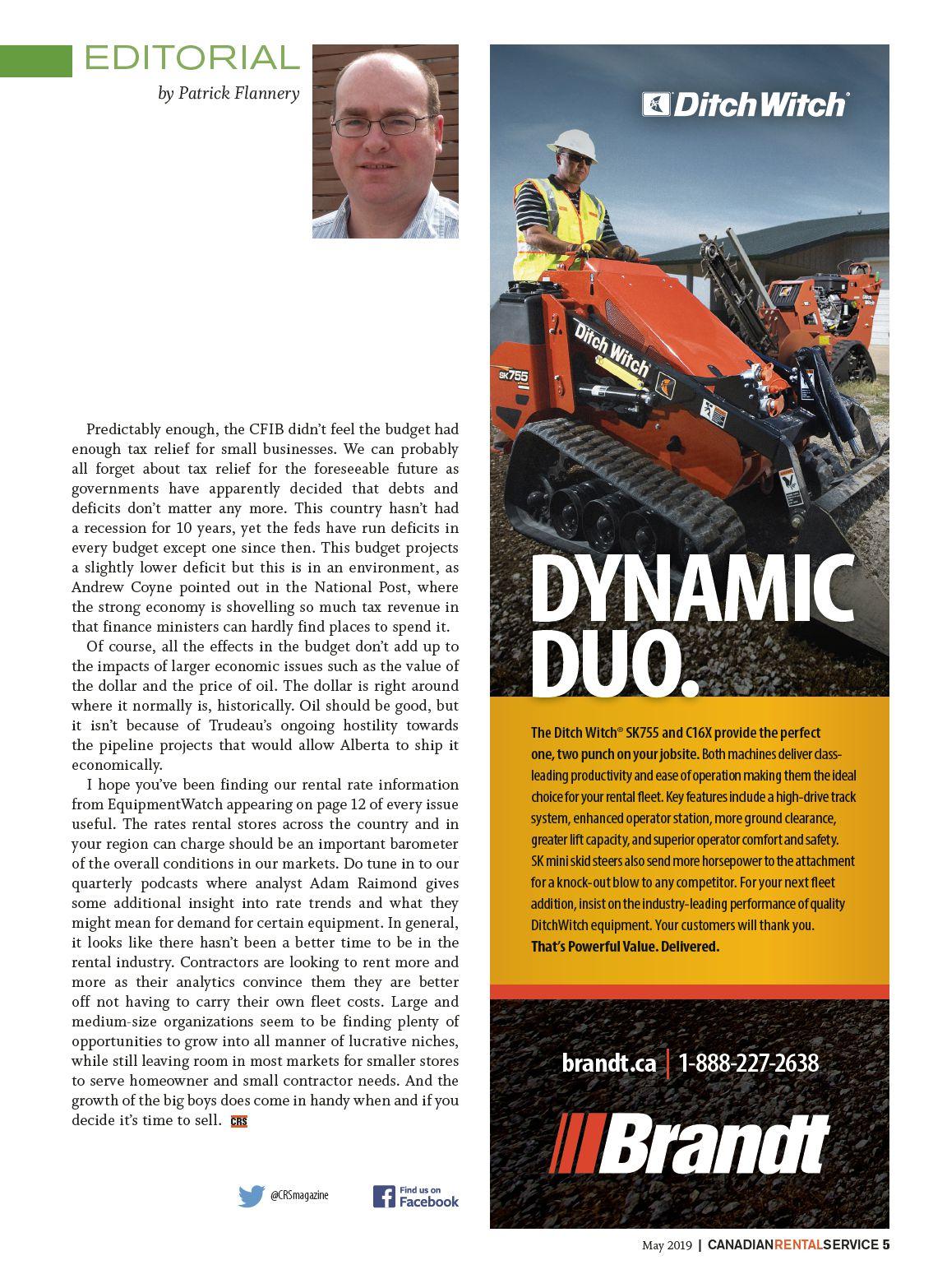Join Canadian Rental Service editor Patrick Flannery and EquipmentWatch analyst Adam Raimond for a review of last year’s Canadian rate trends and discussion of where they might be going. Missed the interactive webinar date? Listen to the recording online at canadianrentalservice.com > Webinars