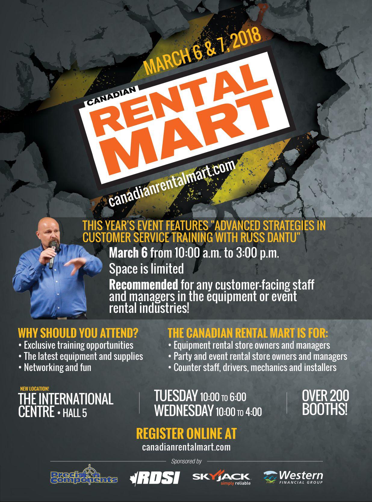 No matter how good your staff is at pleasing customers, it can always benefit from a day of thinking and talking about customer service. Join Canadian Rental Service columnist and professional customer service consultant Russ Dantu for an energizing session aimed right at the rental industry.