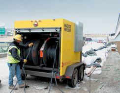 Flex has three integrated LED flood lights to light the work area after dark for added safety and 120 per cent fluid and fuel containment. The patented Smart Thaw flow reversing system reduces thawing time and fuel usage by as much as 50 per cent on ground thaw applications while providing a more consistent temperature across the hose pattern for a more consistent and accurate temperature control for concrete curing. The patented combustion environment control system that pre-heats the air and fuel before entering the burner for combustion allows the 900GTS Flex to start and run in even extreme cold conditions and eliminates the need to adjust the burner in response to wide swings in temperature that may arise over the course of the job.