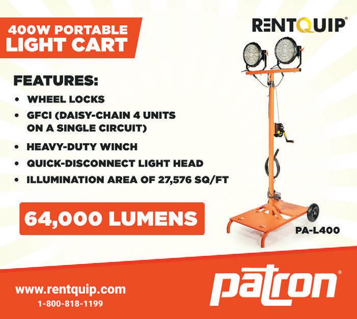 Also available is the threein-one trailer, which offers heat, lighting and power generation. It features one FVO-400RC (390,000 BTUs) heater with recirculation, one 15-amp GFI service outlet and 15-foot two-stage mast with four 1.8-amp LED lights, providing more than 100 hours of run time. Meanwhile, FVO-400RCBT is a 390,000 BTU indirect fired oil heater with a recirculating hood and 118 USWG fuel tank. It has 44 hours of run time.