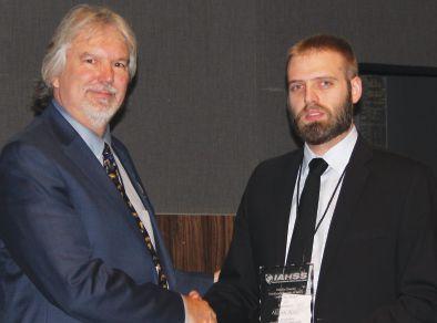 presented the IAHSS Ontario Chapter Leadership Award to Aidan West, Manager Integrated Risk Services, North Bay Regional Health Centre. Jeremy Bertrand accepted the award on West’s behalf.