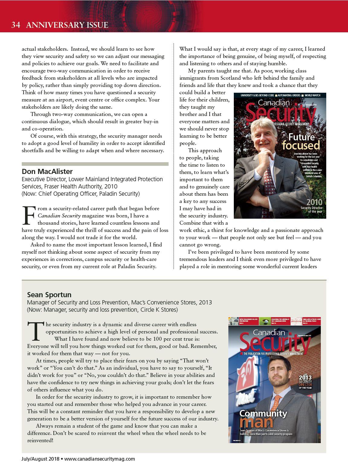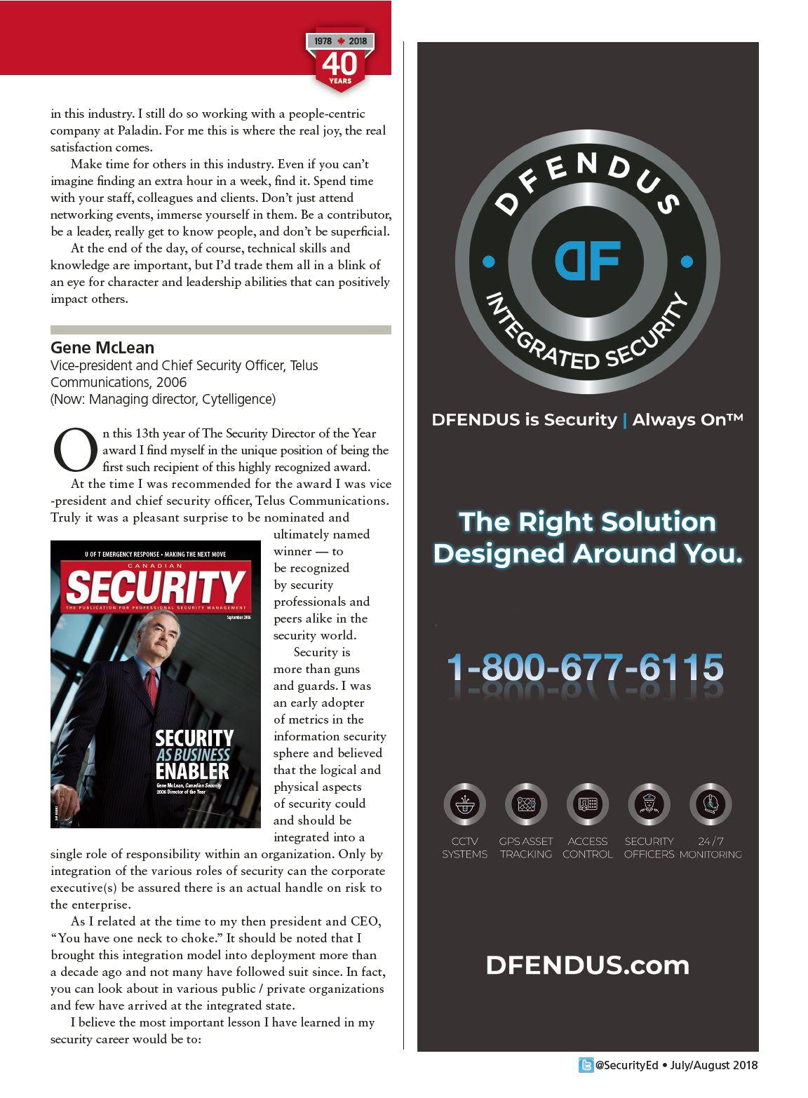 The contents of Canadian Security are copyright by ©2018 Annex Publishing & Printing Inc. and may not be reproduced in whole or part without written consent. Annex Business Media disclaims any warranty as to the accuracy, completeness or currency of the contents of this publication and disclaims all liability in respect of the results of any action taken or not taken in reliance upon information in this publication.