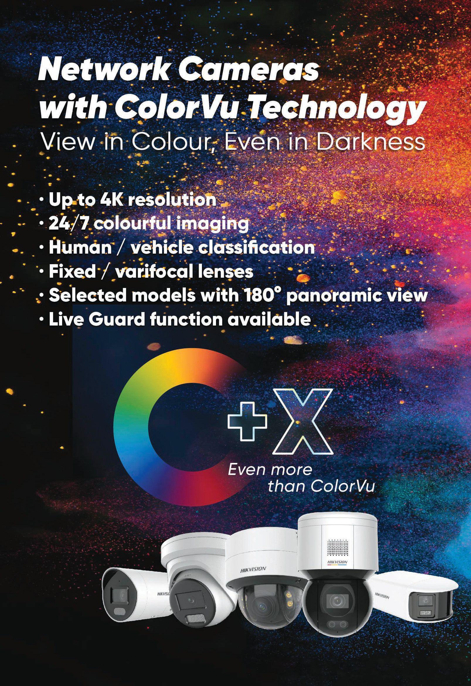 ColorVu + X technology elevates Hikvision cameras, not only delivering vivid colour video 24/7 but also adding a series of technologies that guarantee better and wider imaging, more details, smarter surveillance control, and deliver unmatched value to the security market.