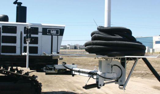 Four-inch pipe is coiled up into a maxi before it enters the yard for delivery. Photo courtesy ads Pipe.