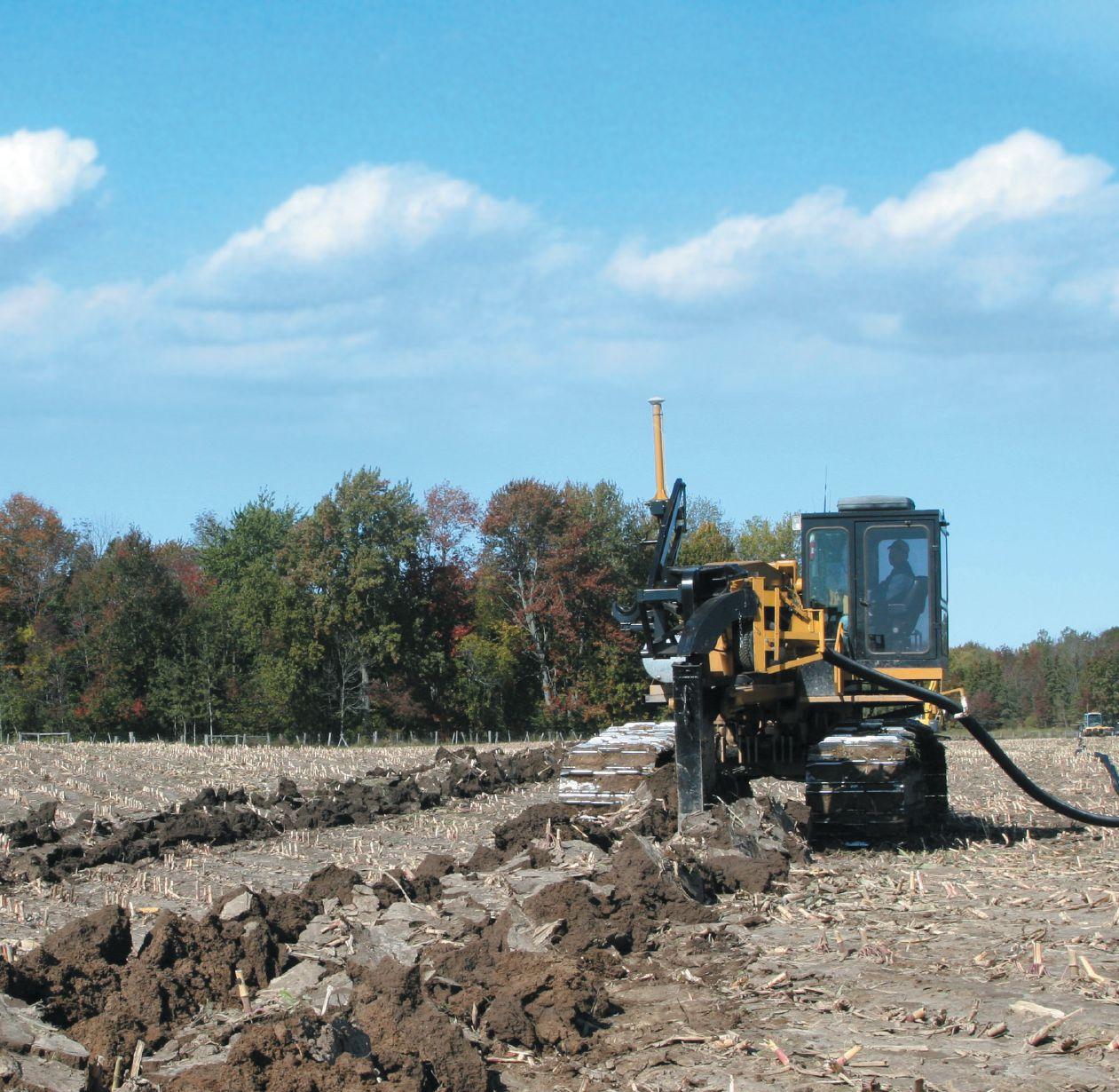 “Initially the focus of operations revolved around farm drainage, but has since grown to encompass earthmoving, site preparations, aggregates and municipal sewer and water projects,” notes Dan. “Farm drainage, however, remains the main focus.” The first tile machine the Hodgmans used was a sevenfoot Zor plow mounted on a Steiger Tiger