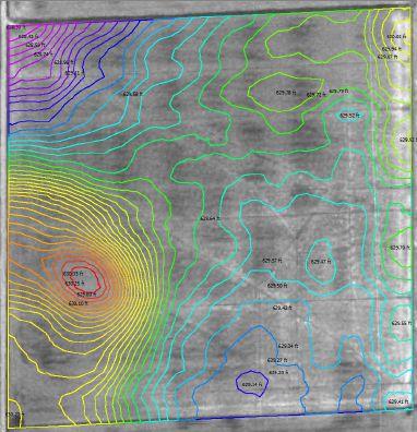 Once survey data is in Farm Works Surface software, contractors can easily analyze the data to make betterinformed drainage decisions. They can view data from every angle; determine watershed zones to assist with main, submain, and lateral pipe placement; and configure contours at any interval to display topography and relative elevations. In addition, contractors can view field analyses over the top of aerial images to provide a more complete view of the data.