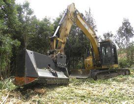 There are four model ranges in the Seven E series, fitting hydraulic excavators from five to 40 tonnes, with mulcher widths of three, four, five and six feet. Wood material up to a maximum 10 inches can be mulched. Fixed and variable displacement hydraulic motors are offered.