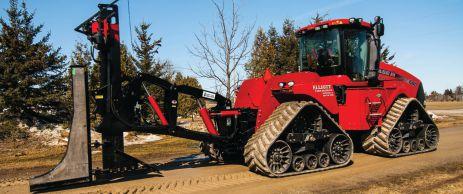 Wolfe has upgraded the 540 drainage plow. The lift and attitude cylinders are now seven inches in diameter, increasing capacity by 30 percent, and the two six-inch grading cylinders have been replaced with one 10-inch grading cylinder. The back step was modified to reduce the likelihood of damage by the dirt berm. The oscillating pins are now locked in from the front side. The auxiliary pumps and valves were reconfigured so that both pumps feed a single valve bank. www.wolfeequipment.com