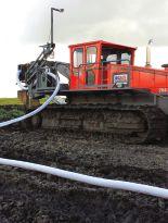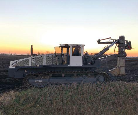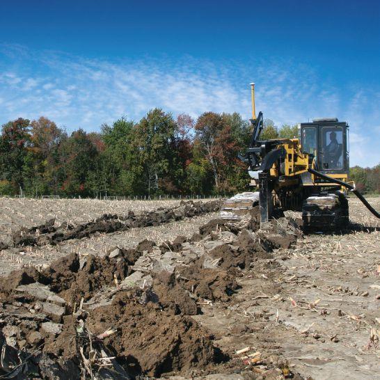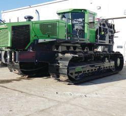 The CT12 is designed to aggregate backfill for subsurface drainage, and has been through a number of different phases since it was first introduced to the market in 1983. In addition to its forward conveyor, the CT12 also features a tipping hopper, allowing it to be used as a dump truck for hauling aggregate along pipeline rights of way.