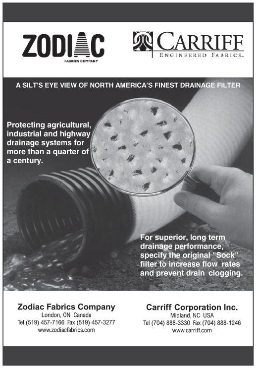 In spite of the benefits of tile drainage and controlled-tile drainage, and with the gathering of data to substantiate those stated benefits at watershed scales, the job is to the contractor to convince a farmer or a landowner of the value of such an investment. That is why Sunohara is pleased to see that the kind of BMP work that they are doing is yielding some welcome validation and support from government sources. “In part, because of this project and the work we’ve been doing, controlled-tile drainage is now included in the Canada-Ontario Farm Stewardship Program (COFSP) and South Nation Conservation Clean Water Program,” says Sunohara, adding that the COFSP program provides a costshare format worth 30 percent, up to $15,000 for a control structure installation. This is a new and important addition that has come in the past two years, part of a lobbying effort of WEBs, to evaluate and promote BMPs. “What we’ve come up with is that this is a pretty decent type of BMP; it’s lowcost, flexible regarding management of water table, retrofit, easy-to-install, and on a new installation, it’s easy to design into it. The province of Ontario and the federal government have taken that and included it (in their stewardship program).”