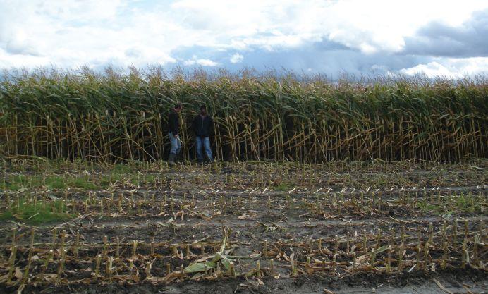 Top: Non-uniform height in a corn field with conventional tile drainage indicates less efficient control of moisture.