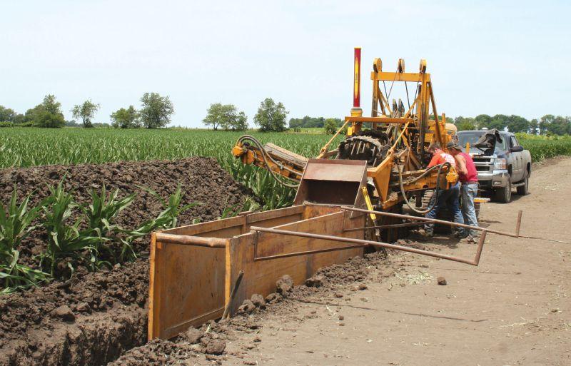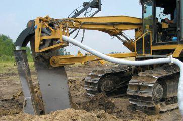 operators, since roll-over is a constant threat. Sometimes an excavator is used to provide extra stability, holding the top of the backfill trailer with a cable. Occasionally, a path must be dug for the trencher if the cross-slope is too steep.
