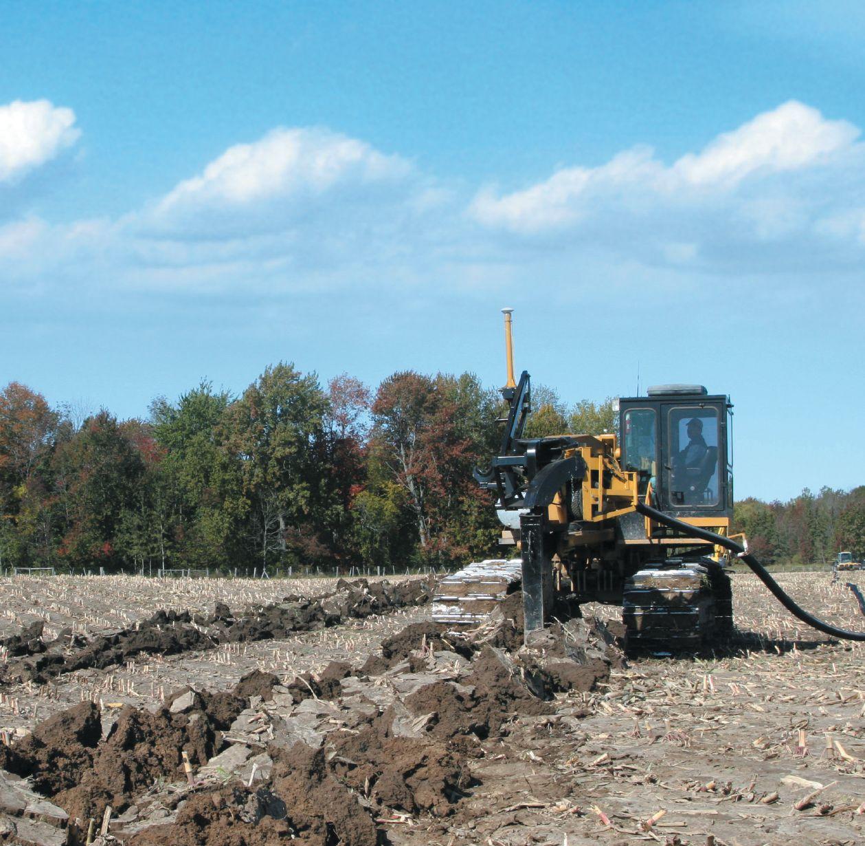 of an inch of the setting, to a depth of six feet. “This accuracy was mostly due to the second linkage at the rear of the system,” says Paladino. “It did the job of the rollers on the Badger, without infringing on their patent, and it worked great since day one.”