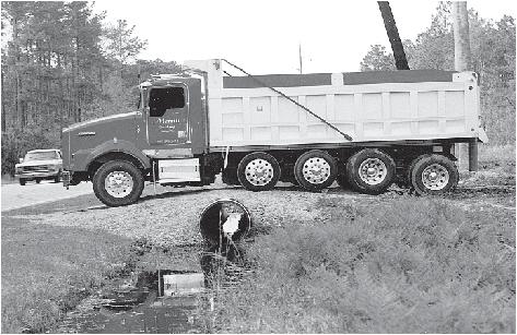 trench so that it can be bladed back in after the addition of aggregate, if required. The augers can be winched out of the way when setting in at ditches to minimize any damage to banks.