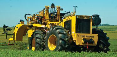 The trencher requires a 150-200 hp tractor with vario transmission or a creep speed gearbox for speeds down to 0.3 km per hour. The machine has a maximum digging depth of up to five feet. It can use