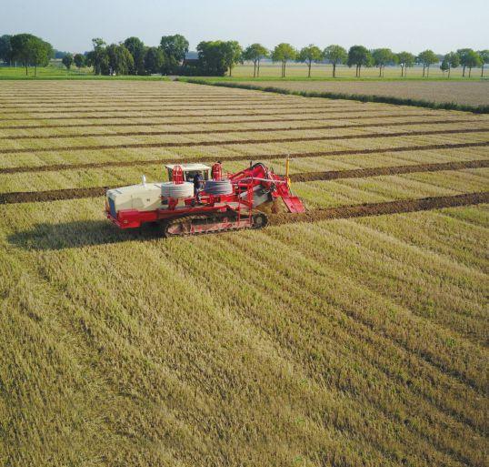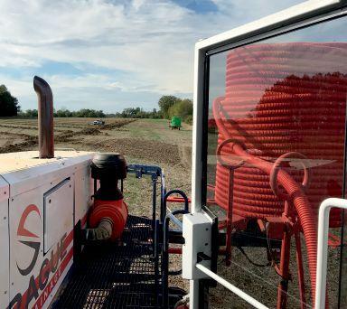 RIGHT: An aerial image of Marquardt Farm Drainage installing tile drainage in a field. Photo courtesy of Steve Cronsberry at Marquardt Farm Drainage.
