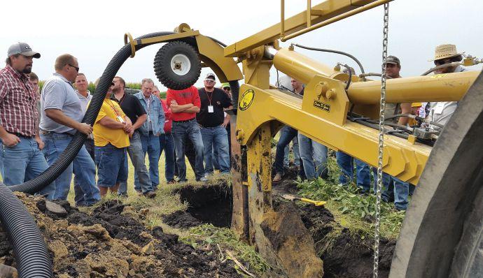 transition in drainage techniques. Slow, inefficient installation of heavy clay and concrete tile has given way to lightweight, flexible, corrugated plastic drain tubing installed with laser-beamcontrolled, high-speed trenchers and drain plows.