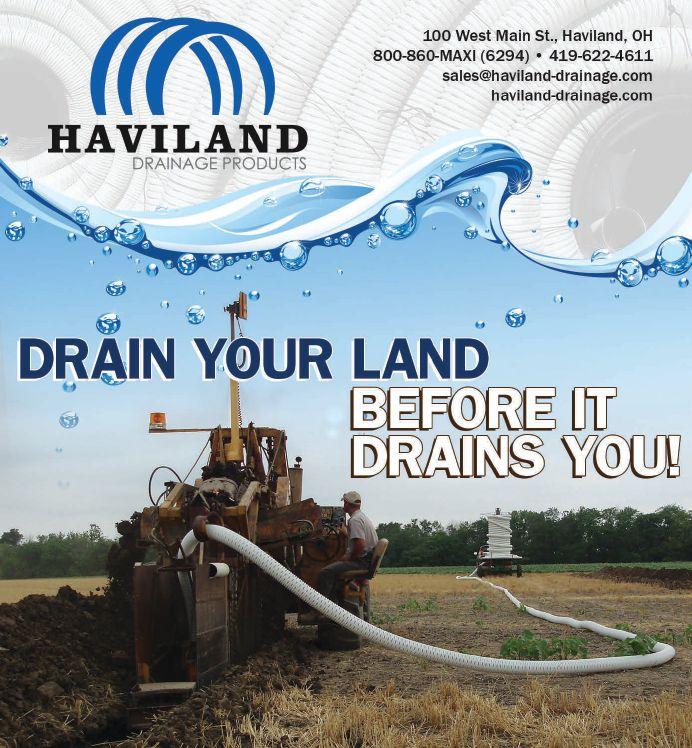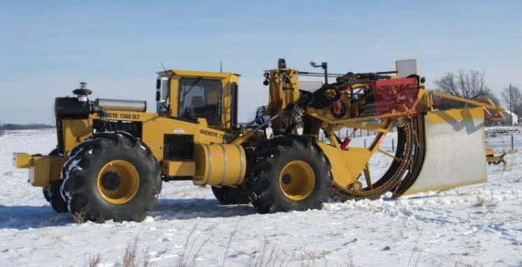 72 miles of clay tile on his 320-acre farm. In the beginning, clay tile was handmade in various ways before being mass-produced in kilns, a type of oven that made the process more efficient. When it came to installing tile, contractors relied on hand digging and horses with scrapers. This install method lasted until the Buckeye Trencher Corporation started to bui ld stea m tren chers in 190 2. In the early 1960s, the United States Department of Agriculture Agricultural Research Service at Ohio State University researched ways to line drains with plastic and control the mole plow powered by a dozer with a laser. Mole drains were also common. From then, to the present, tile drainage has modernized in leaps and bounds, with more of its story yet to be told.