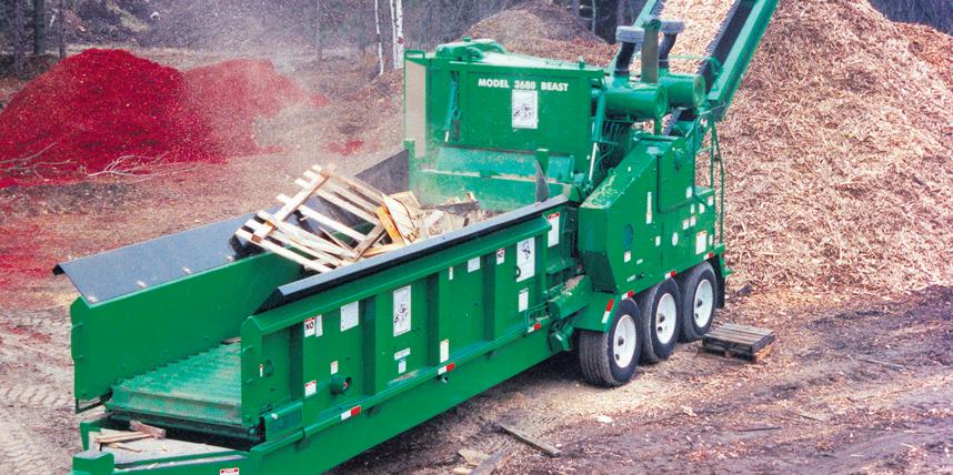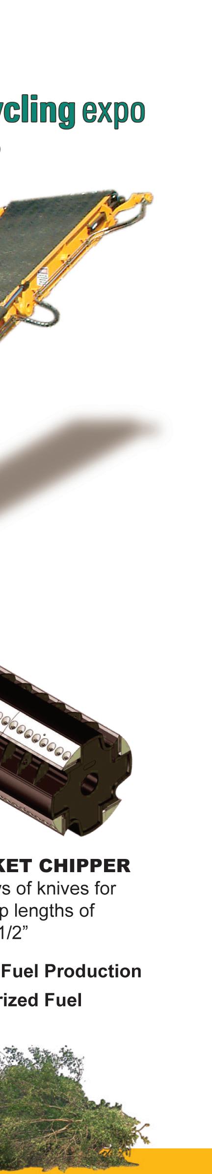 The Chippo 500: This is a tractor driven drum chipper for processing whole wood trunks and branches. The robust design and the use of premium components make the drive rating of up to 500 hp possible. This means a throughput of up to 235 cubic yards per hour. The Chippo 500 offers the choice between “materialfriendly”, energy saving discharge via conveyor belt or conventional discharge via a blower featuring variable rotation speed. These two options let you create a stock pile or load out a truck with just the press of a button. Komptech will be offering three larger versions in 2009, the Chippo 5000, 6000, and 7000. Crambo 6000 Forest: The “Forest” model integrates a star screen unit into the discharge of the Crambo wood shredder. When the Crambo is shredding root stocks, green waste and forest residue containing soil and other residue, the fine fraction is effectively screened out in one operation. This is ideal for the customer looking to process co-gen in the forest in one pass. This unit is available on tracks, as well as semi trailer with grapple. Komptech provides three different power packages ranging from 340 hp to 600 hp. www.komptech.com