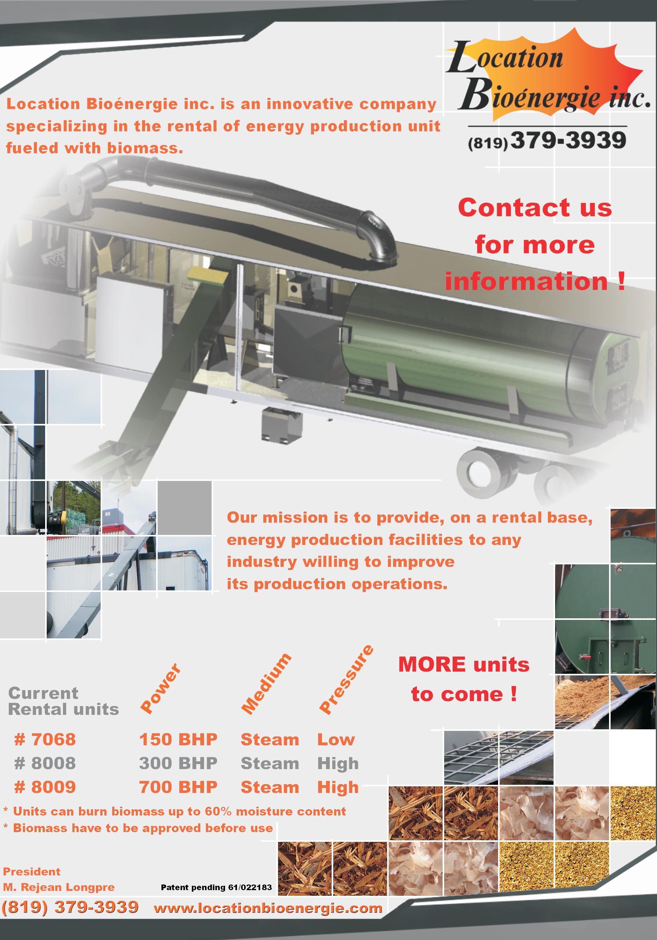 From time to time, we at Canadian Biomass make our subscription list available to reputable companies and organizations whose products and services we believe may be of interest to you. If you do not want your name to be made available, contact our circulation department in any of the four ways listed above.