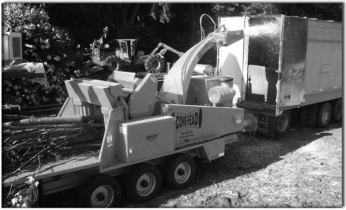 Brad Hassek of Lufkin, TX is running a model 585 with a 500 hp John Deere engine and doing five to eight loads per day from delimber slash and wood refuse. He likes the high velocity discharge, which makes for tightly packed loads, and says he can feed his 585 material that other machines wouldnʼt take. The simplicity of maintenance and operation, mobility and durability are also features that attracted him to Dynamic. www.dynamicmfgcorp.com