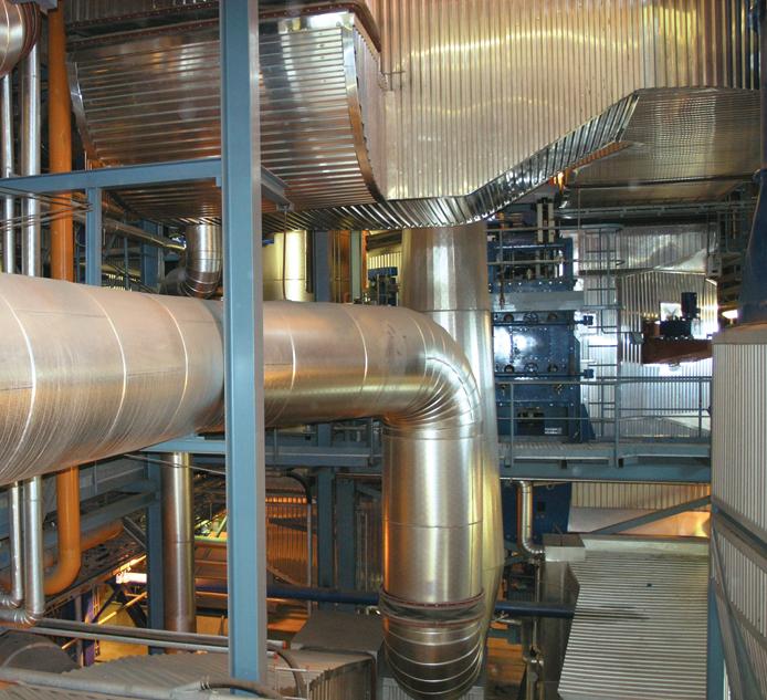 Gasification is the energyefficient conversion of a carbonbased material such as woody biomass into a mixture of carbon monoxide and hydrogen; this syngas is then used as an energy source. Nexterra’s gasification system is coupled with a heat exchanger to generate hot water, steam, or hot air. Because of the new direct-fire application, syngas can be produced in one location and combusted elsewhere on site in the existing thermal