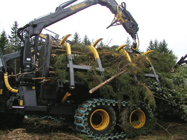 Field tests have shown results in the 10-12-ton load capacity range allowing a semi trailer to be filled in about three loads – over 30 tons of biomass in total! The new PONSSE BTS bunk also handles round wood loads in a locked position.