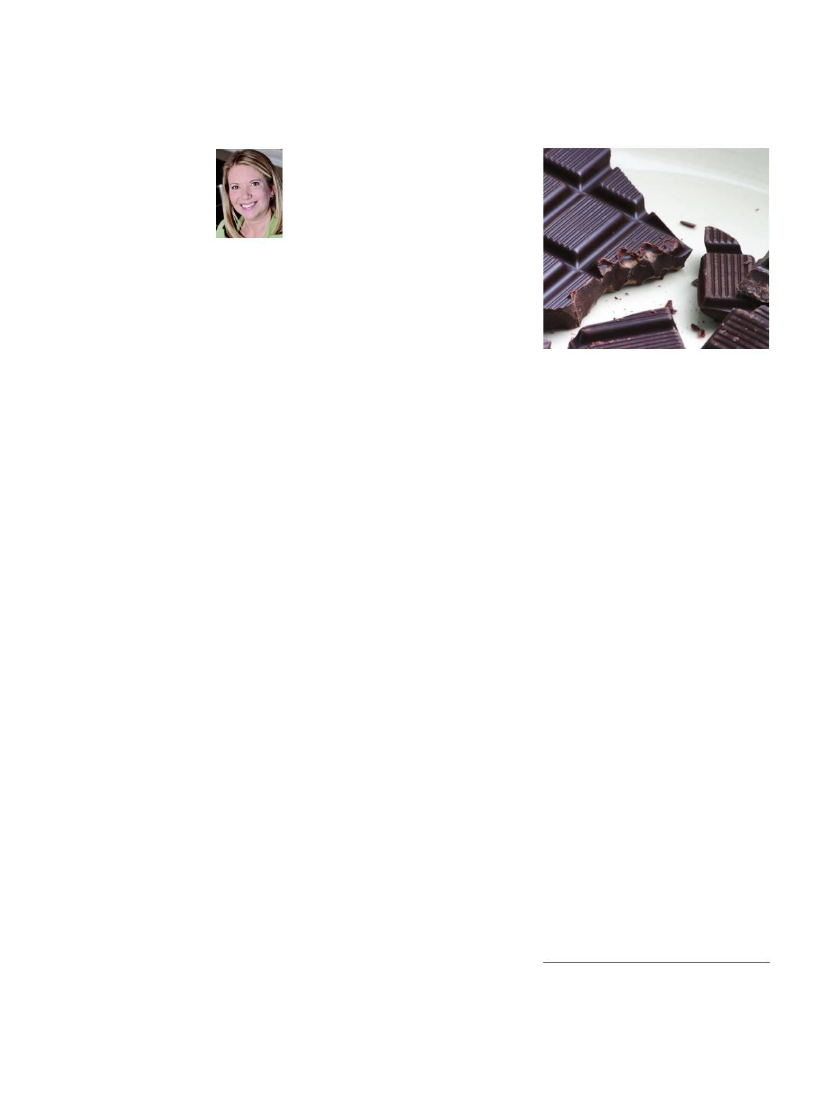 People are requesting Xococava’s wild blueberry and black walnut bark with Belgian dark chocolate, whose ingredients are all known for their antioxidant properties. They relate chocolate to improved heart health and better mood. Stone observes that Canadians are acquiring the taste for higher quality chocolate (in the bittersweet range of 63 per cent cocoa plus that has higher antioxidant levels), and suggests they may be eating less of the better product because of the flavour factor leading to early satiety. Barry Callebaut, North America, recently launched Acticoa. This chocolate provides 880 milligrams of cocoa flavanols per 40-gram serving. Alan Slensinski, R&D innovation manager, describes the process used to create Acticoa chocolate beginning at harvest from the cacao tree. Special control and handling of the beans through