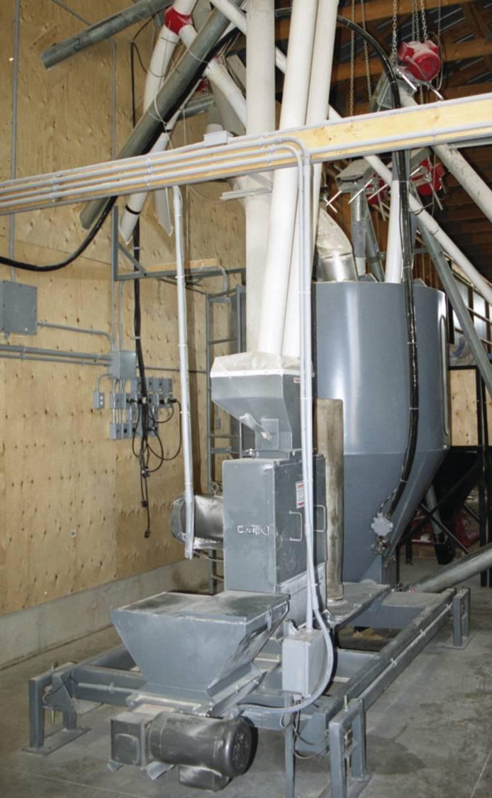 As poultry farms become larger and more land-based with farmers growing grains on their operations, the savings from making feed on the farm has increased signi cantly.