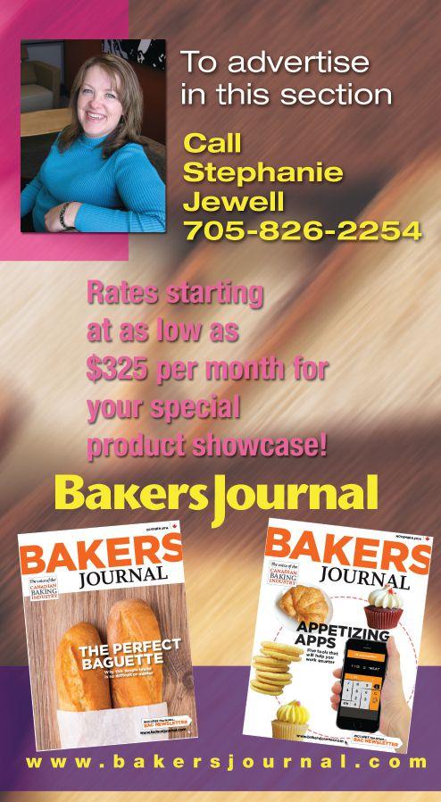Send your subscription request to: Bakers Journal P.O. Box 530, Simcoe, ON N3Y 4N5 Tel: 1-866-790-6070 ext. 206 Fax: 1-877-624-1940 Email: subscribe@bakersjournal.com