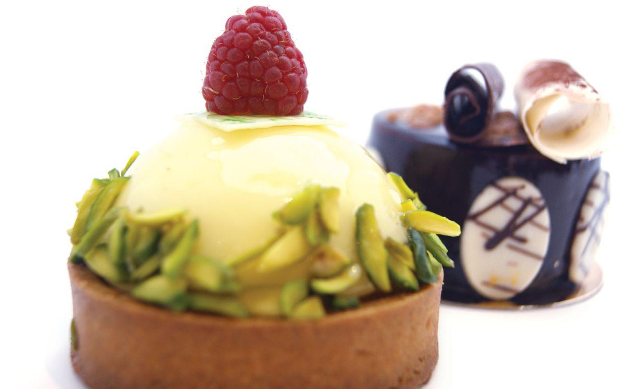 The Vendôme (left) is made with sweet paste, almond cream, white chocolate and lemon cream and pistachios. The Flandrin (right) is made up of 58 per cent dark chocolate mousse with an almond dacquoise and chocolate praline crunch.