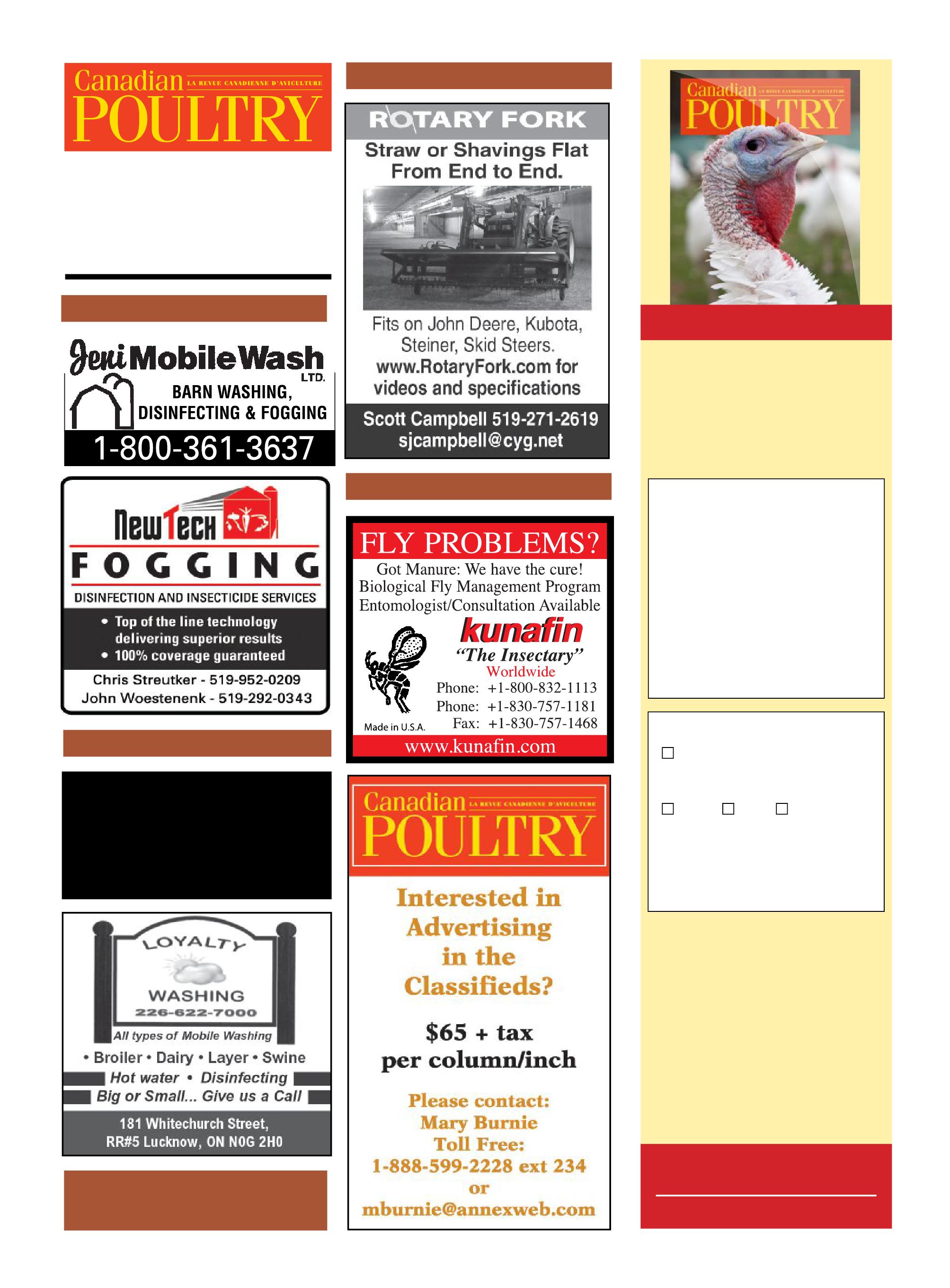 Circulation email: subscribe@canadianpoultrymag.com Tel: 866-790-6070 ext 201 Fax: 877-624-1940