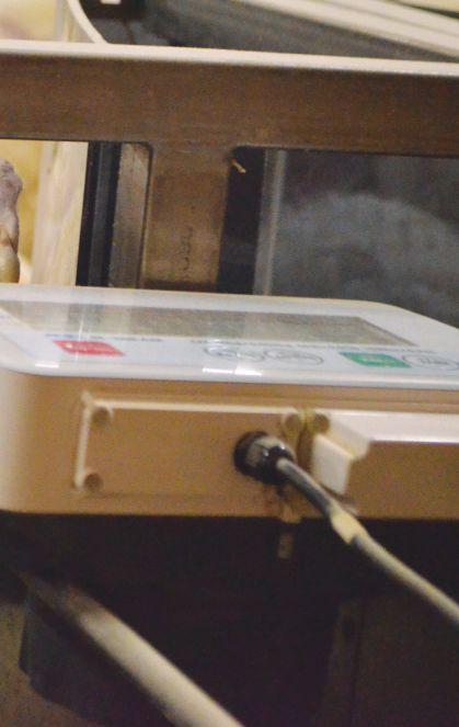 number of times they fed every day. Willems describes the data collected as “vast.” Some birds preferred the central feeders; some preferred the ones on the sides of the pen. “The system records data from each scale every second and the turkeys are active around 14 hours a day,” said Willems, “giving us the capacity to record about 1.6 million data points a day.”