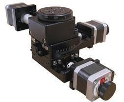 OES introduced its YPR-10-15-60 Series of three-axis yaw, pitch, and roll stages that feature four motor options. The series is the integration of a 60mm diameter rotary stage (upper axis) capable of 360 degrees of continuous operation, and two goniometers (middle and lower axes). The middle stage has a range of +/- 15 degrees and the lower stage has a +/- 10 degrees range. The four motor options include the -01, a stepper motor-driven option that has knobs for manual adjustments. The stepper motors, with a 10 micro-steps per step motor driver, have a repeatability of +/- 0.01 degree and travel speeds of 30 degrees-per-second (roll stage) and 14 degrees-per-second (pitch and