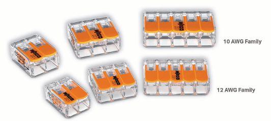 Pull the lever up, insert the stripped conductor, and push the lever back down –done. WAGO’s 221 Series compact splicing connectors let you connect any combination of solid, stranded and flexible copper wires quickly and reliably. Visually inspect for proper strip length and complete wire insertion through its transparent housing.