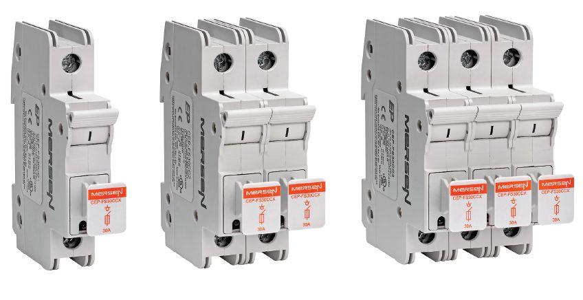 Mersen’s Compact Fused Disconnect incorporates switch functionality with the high protection level of a fuse. The switch accepts class CC fuses, is UL 98 listed and suitable for branch circuit disconnect and protection. It has a smaller footprint compared to a traditional Class CC disconnect with an interrupt rating of 200kA.